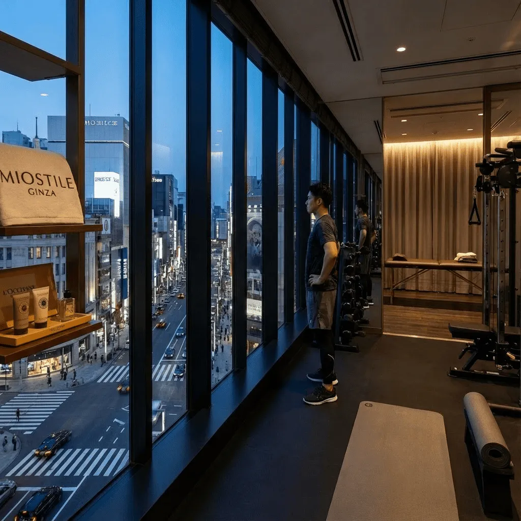 銀座の地上約50メートル、都会の喧騒を見下ろす特別な空間。MIOSTILE GINZAは施設全体を毎回完全貸切にするため、入室から退室まで他のお客様と一切顔を合わせることがありません。更衣室もシャワーもトレーニングルームも、すべてがあなただけの空間です。室温調整も、BGMの選択も自由。L'OCCITANEのアメニティ、プロテイン、ウェア、タオル、すべて完備されており完全手ぶらで通えます。弁護士のTR様は「筋トレをするだけでなく、トレーニング後の別室でのコンディショニングに毎回癒されている」と語ります。多忙な日常から離れ、自分だけの時間を過ごせる。この特別感こそが、5年以上通い続けるリピーターが多い理由です。パーソナルジムは単なる運動施設ではなく、心身を整える聖域である。MIOSTILE GINZAはその思想を体現しています。